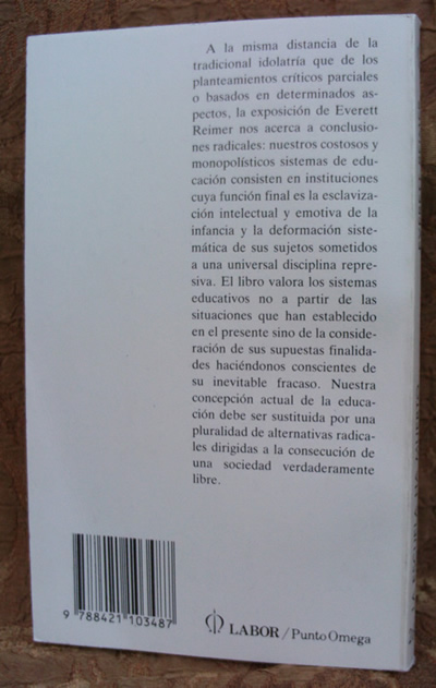 Titulo: "La Escuela ha muerto". Alternativas en materia de educación. / Autor: Everett Reimer /